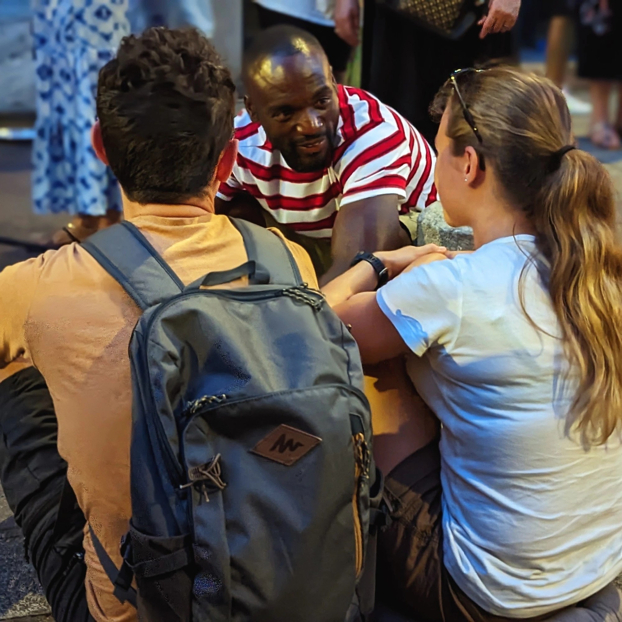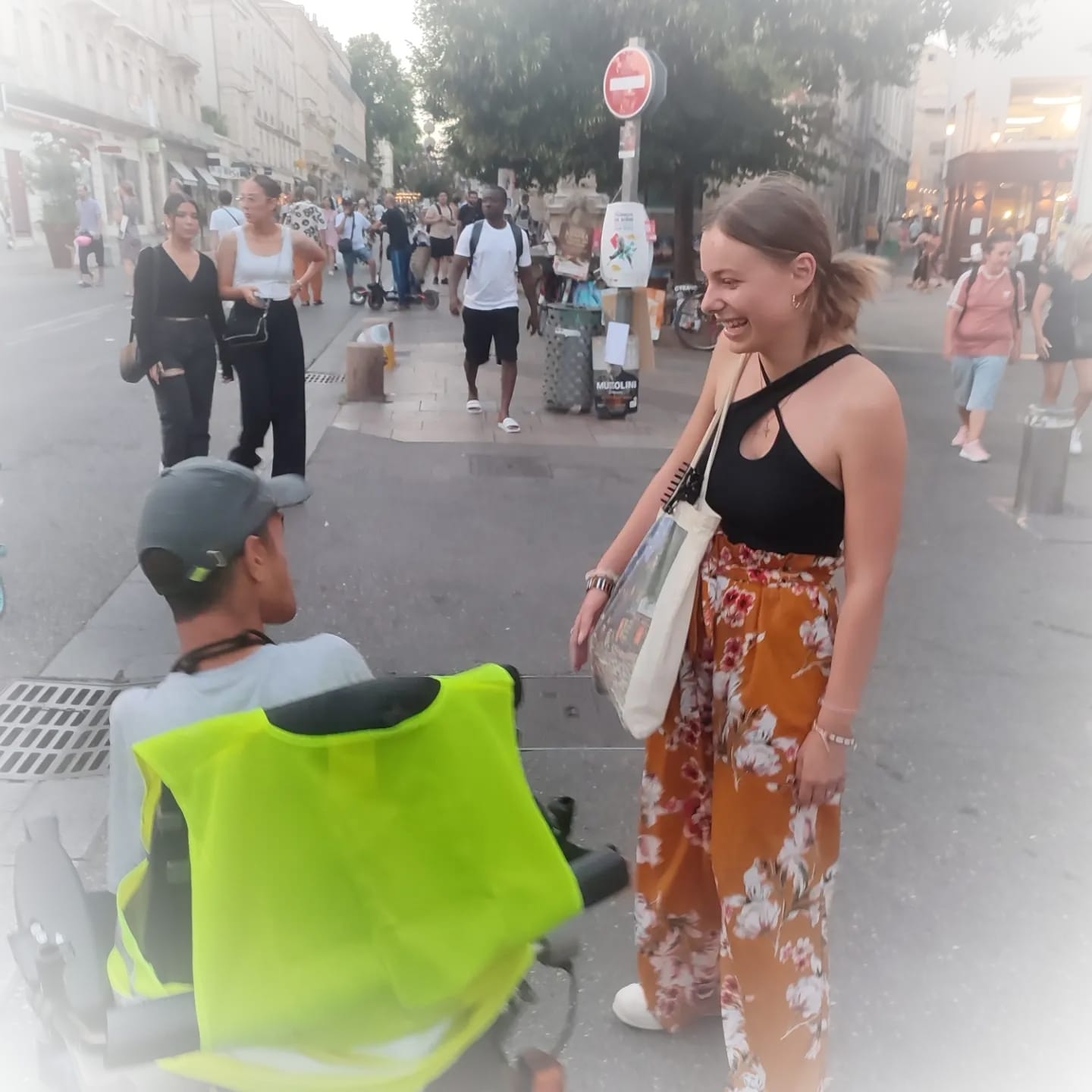 Nous avons eu l’opportunité de partager notre témoignage avec un homme plutôt décontracté qui s’est arrêté en nous entendant parler d’espoir. Malgré son handicap d’un bras et d’une jambe, il a été profondément touché par le message de vie de Jésus. Dans la rue, il a décidé de donner sa vie à Jésus en notre présence. Plus tard, il a exprimé : « Je m’étais éloigné, mais à travers vous, Dieu est revenu me chercher, merci. »