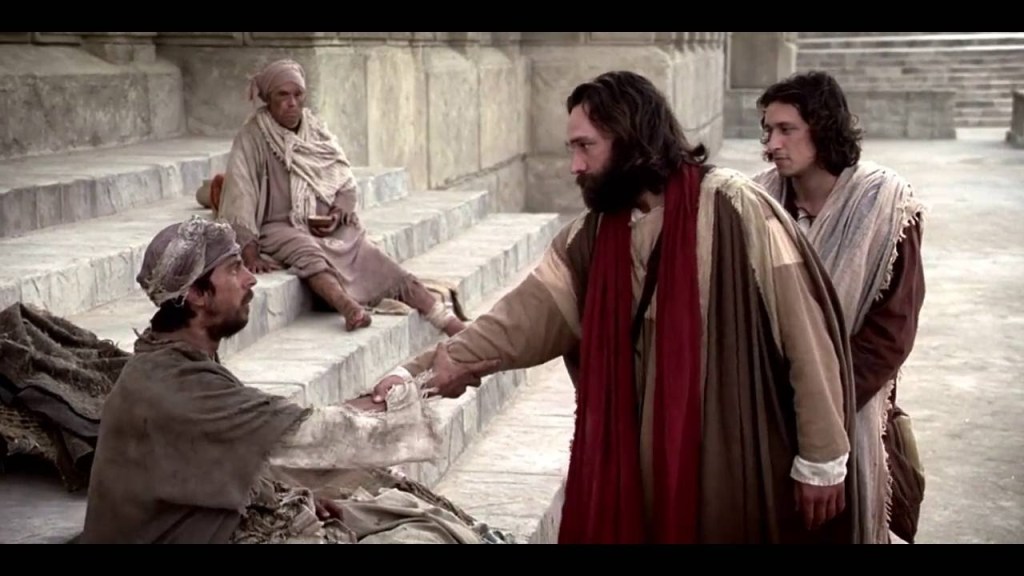 En arrivant à l’une des portes du temple, surnommée la Belle (que mon épouse et moi-même avons visitée en 2021), les deux apôtres aperçoivent un paralytique. Il est facile de deviner l’existence misérable de ce pauvre handicapé ! Depuis combien d’années se retrouve-t-il ainsi, seul, assis, à faire l’aumône ? Dix ans ? Vingt ans ?